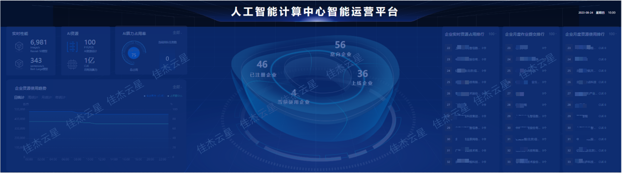 佳杰云星通过多样性算力同一运营安排办理平台将通用算力、AI智算、HPC超算进行同一办理运营,一期已建成210P算力,帮帮企业正在大模子时代加速营业立异,也是科技部批复的18个国度新一代人工智能立异成长试验区中首批投入运营的项目。武汉人工智能计较核心和武汉超算核心均已接入“中国算力网”,内容生成、数字孪生、言语取图像处置、生物消息、AIGC虚拟人智能帮理取智能营销等多种场景的大规模落地使用供给包罗跨计较核心、超大规模算力安排、大模子取数据正在线买卖等国度级智算同一办事平台。算力则是人工智能的策动力。饱和算力成功升级达到300P,采用基于华为昇腾AI根本软硬件的AI集群,为近50家科研机构和高校供给全方位办事;佳杰云星为9个算力立异平台中的7个供给了智能运营平台。